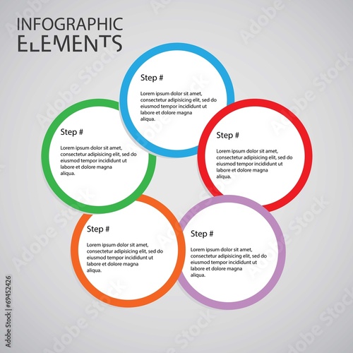 © stringerphoto, Fototapeta premium Infographic design with colored and white circles on the grey ba