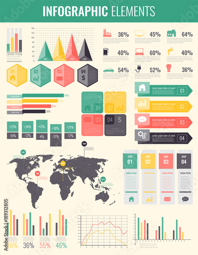 Obraz premium Infographic Elements with world map and charts. Vector