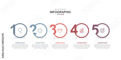 © KP.Stock, Naklejka premium Infographic Illustration design template with icons and 5 options, workflow layout, icons, diagram, report, web design. Creative, vector, illustration.