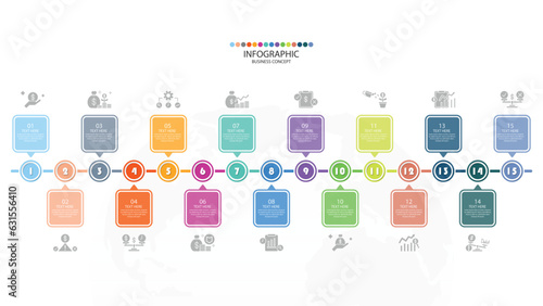 Fototapeta premium Infographic process design with icons and 15 options or steps.