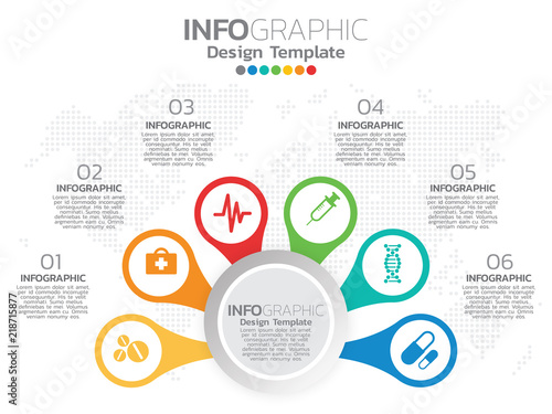 © sticker2you, Fototapeta premium Infographic template design with 6 color options.