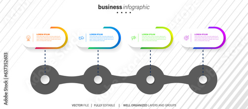 © Papilouz Studio, Naklejka premium Infographic template for business. 4 Steps Modern Timeline diagram with road journey concept, presentation vector infographic.