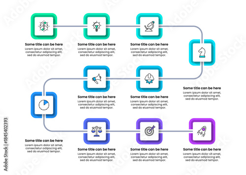 © kuliperko, Naklejka premium Infographic template. Line with 10 squares and icons
