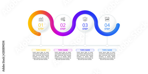 © Krittapol, Naklejka premium Infographic Timeline template can be used for workflow layout, diagram, number options, web design. Infographic business concept with 4 option, parts, steps or processes. Abstract background.