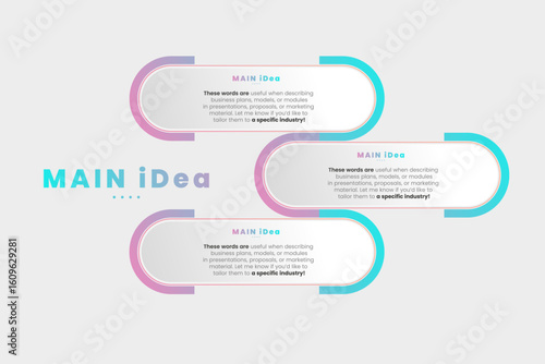 © Paradox-D, Naklejka premium infographic uses three horizontally elongated capsules to present key business concepts, with gradient color show the steps of workflow presentation vector illustration