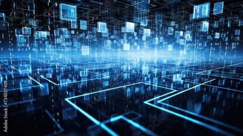 © Damian Sobczyk, Obraz premium Information and Data in the IT Industry Background