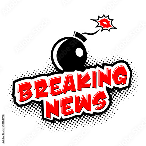 © Kiselov, Obraz premium Information bomb of breaking news. Vector label in comics style on transparent background