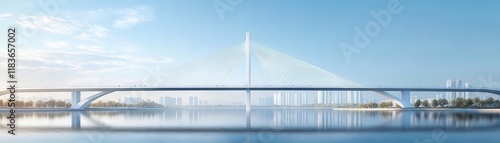 © Naput, Obraz premium Infrastructure bridge flat design front view urban connection 3D render