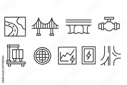 © Pointer Marker, Obraz premium Infrastructure, construction line icon set. bridges, roads, engineering graphics