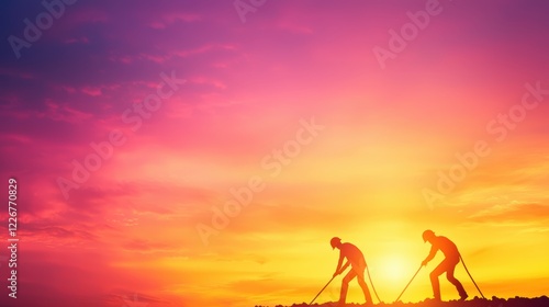 © MAY, Obraz premium infrastructure high voltage power line Construction site with workers building new high voltage power lines, highlighting the development and expansion of energy networks