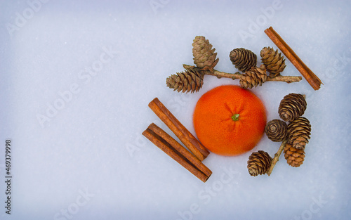 Fototapeta premium ingredients for cooking or christmas decoration. flat lay. space for text. Winter season. greeting card.Christmas scents
