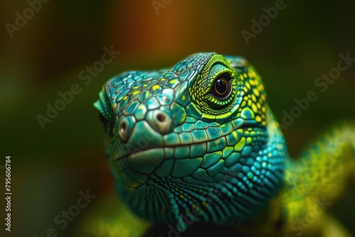 © Andrii , Obraz premium Inhabitant of the Emerald Canopy: Lizard Portrait