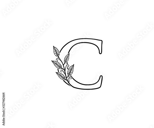 © bintank, Obraz premium Initial C letter with leaves Line Shape logo Icon.