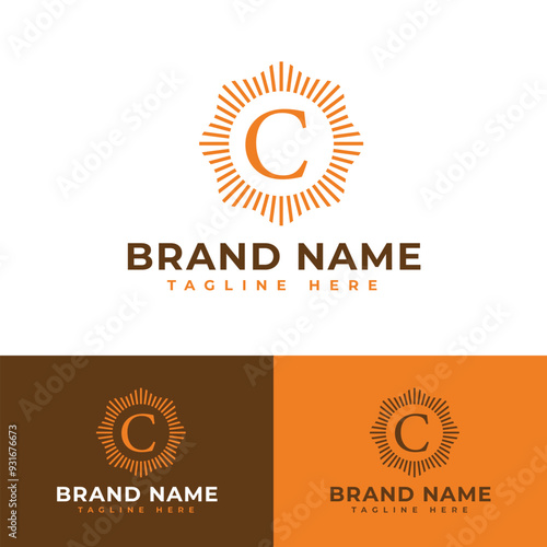 Fototapeta premium Initial C orange circle shine wavy zig zag smooth corner logo symbol icon...