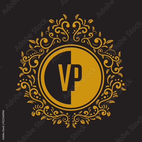 © liarocer, Naklejka premium INITIAL CIRCLE HALF vintage elegant luxury