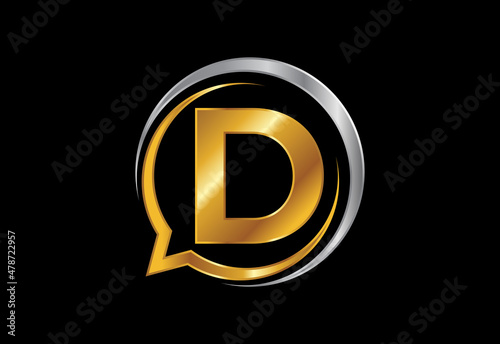 Obraz premium Initial D monogram letter alphabet with a bubble chat icon. Talking chatting...
