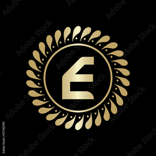 © Rabin, Fototapeta premium Initial E Golden leaf and circle logo design vector. Golden beauty E Logo and business symbol and alphabets vector design