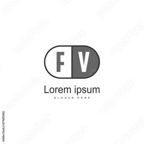 © Robani, Obraz premium Initial FV logo template with modern frame. Minimalist FV letter logo vector illustration
