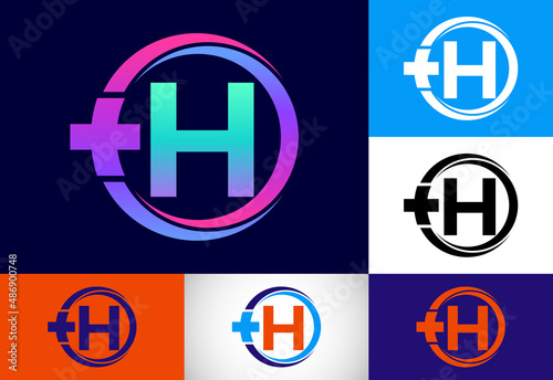 Fototapeta premium Initial H monogram in a circle with cross plus. Medical logo. Logo for...