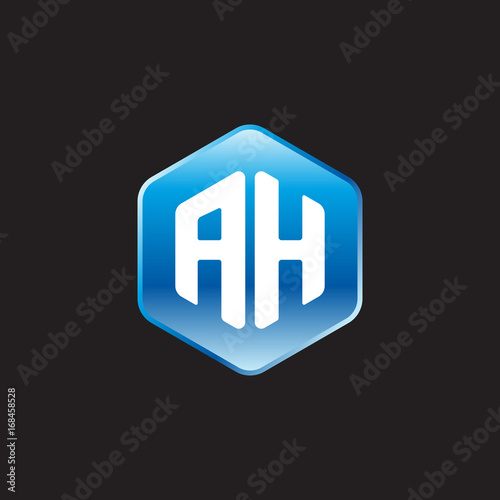 © ariefpro, Fototapeta premium Initial letter AH, modern glossy hexagon logo, gradient blue color on black background