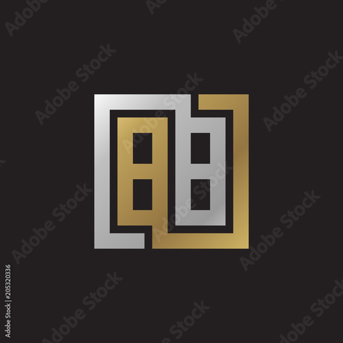 Fototapeta premium Initial letter BB, looping line, square shape logo, silver gold color on...