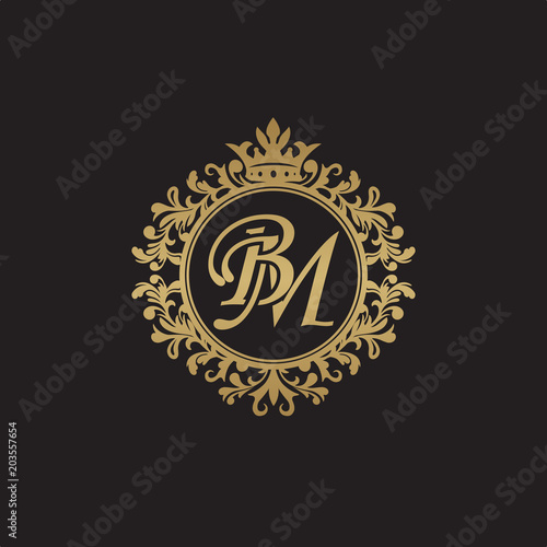 © ariefpro, Fototapeta premium Initial letter BM, overlapping monogram logo, decorative ornament badge, elegant luxury golden color
