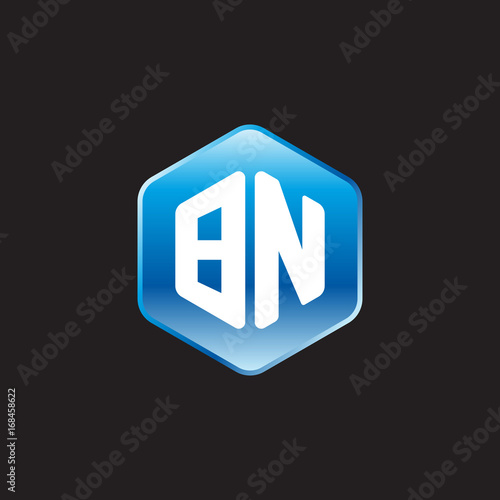 © ariefpro, Fototapeta premium Initial letter BN, modern glossy hexagon logo, gradient blue color on black background