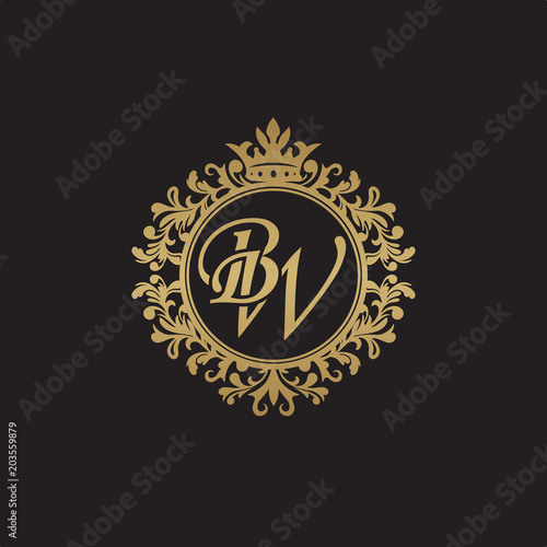 © ariefpro, Fototapeta premium Initial letter BW, overlapping monogram logo, decorative ornament badge, elegant luxury golden color