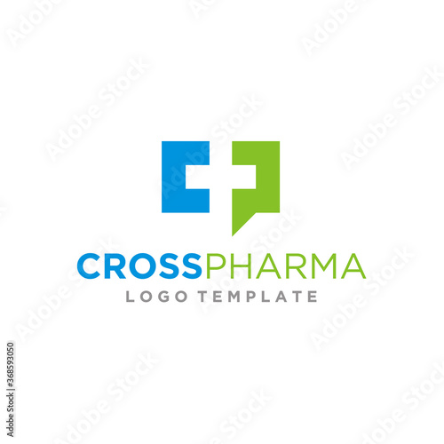 © Foonaz, Obraz premium initial letter C and P with Plus Cross Bubble Chat Pharmacy Hospital logo design