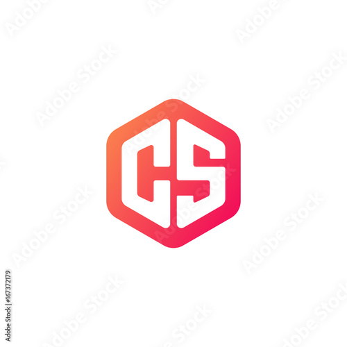 Obraz premium Initial letter cs, rounded hexagon logo, gradient red orange colors