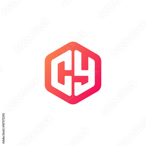Obraz premium Initial letter cy, rounded hexagon logo, gradient red orange colors