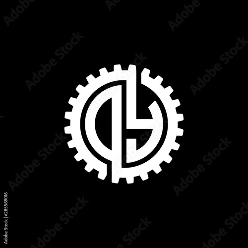 Fototapeta premium Initial letter D and Y, O and Y, DY, OY, interlock cogwheel gear monogram...