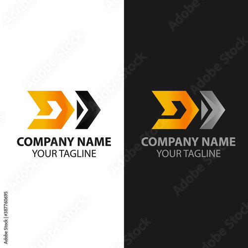 Fototapeta premium Initial Letter D Logo. Red Shape D Letter with Negative Space Right Up Arrow...
