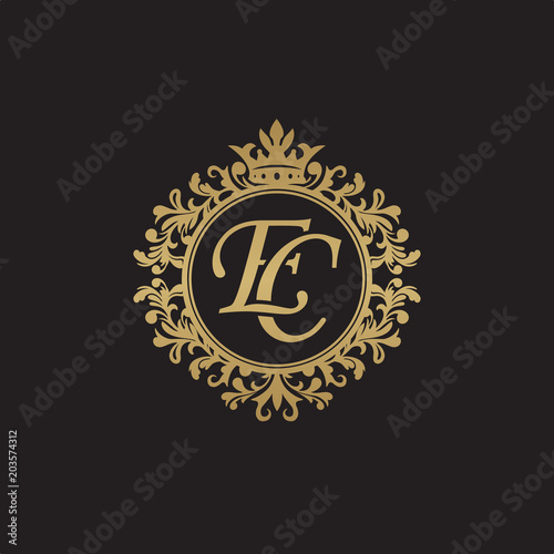 Fototapeta premium Initial letter EC, overlapping monogram logo, decorative ornament badge, elegant luxury golden color