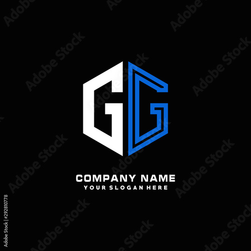 Obraz premium Initial letter GG minimalist line art hexagon shape logo. color blue,white,black background