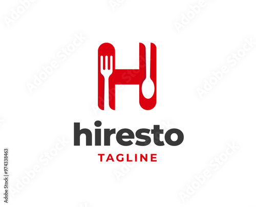 Obraz premium Initial letter h logo with spoon and fork for restaurant logo vector...
