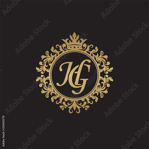Fototapeta premium Initial letter HG, overlapping monogram logo, decorative ornament badge, elegant luxury golden color