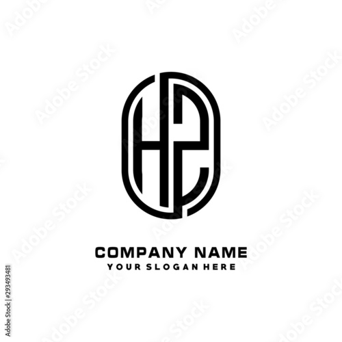 © MUCHAMMAD, Obraz premium Initial Letter HZ Linked Rounded Design Logo, Black color. feminine outline logo design