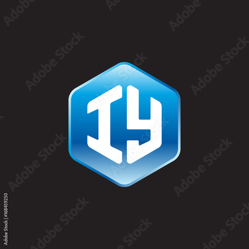 Obraz premium Initial letter IY, modern glossy hexagon logo, gradient blue color on black...