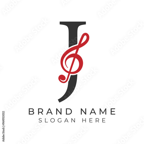 © MuhammadAli, Naklejka premium Initial Letter J with musical note Style icon. Alphabet J Music logo design