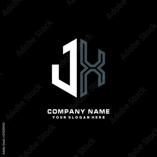 Obraz premium Initial letter JX minimalist line art hexagon shape logo. color...