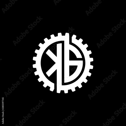 © ariefpro, Naklejka premium Initial letter K and G, KG, interlock cogwheel gear monogram logo, white color on black background
