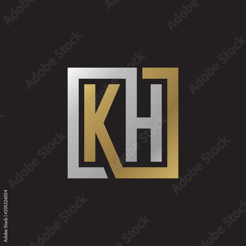 Fototapeta premium Initial letter KH, looping line, square shape logo, silver gold color on...