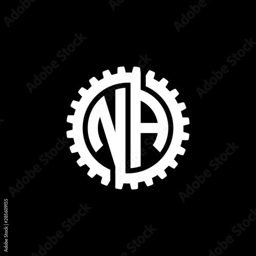 © ariefpro, Fototapeta premium Initial letter N and A, NA, interlock cogwheel gear monogram logo, white color on black background