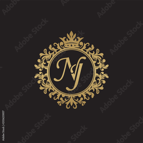 Fototapeta premium Initial letter NJ, overlapping monogram logo, decorative ornament badge, elegant luxury golden color