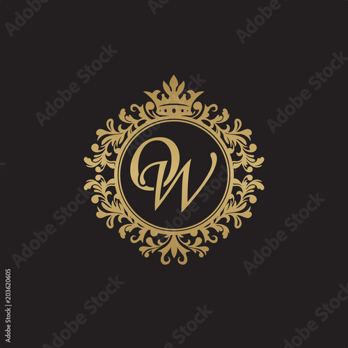 Naklejka premium Initial letter OW, overlapping monogram logo, decorative ornament badge, elegant luxury golden color