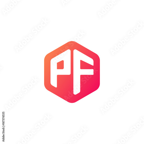 Obraz premium Initial letter pf, rounded hexagon logo, gradient red orange colors