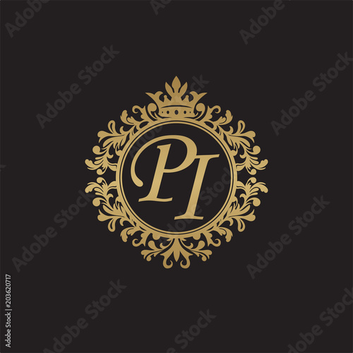 Naklejka premium Initial letter PI, overlapping monogram logo, decorative ornament badge, elegant luxury golden color