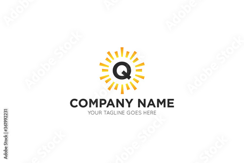 Fototapeta premium Initial letter q sun, solar logo and icon vector illustration