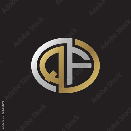 Obraz premium Initial letter QF, looping line, ellipse shape logo, silver gold color on...